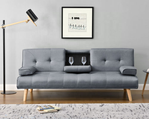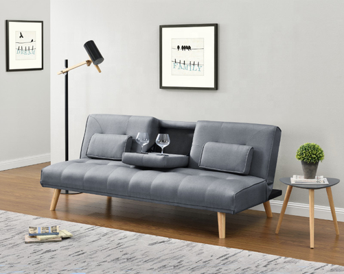 Диван-кровать ткани PU спать многофункциональная желтая с держателем журнального стола и чашки