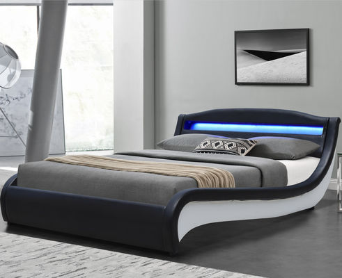 Черно-белая двойная обитая кожаная кровать на платформе со светом СИД
